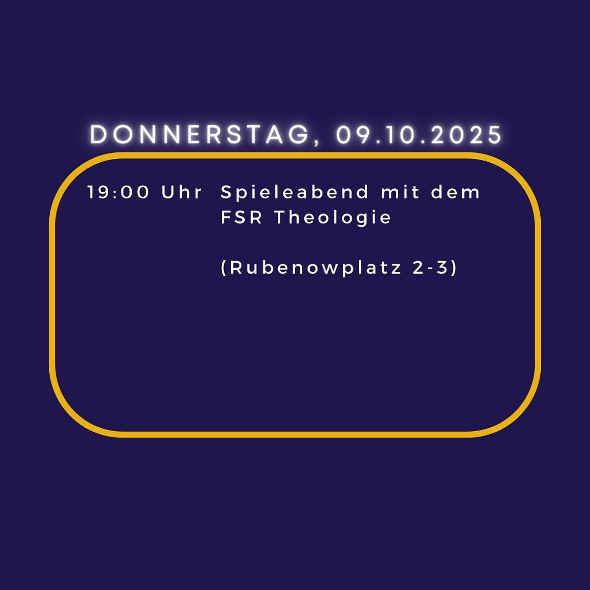 Am Donnerstag, den 09.10., findet ein gemeinsamer Spieleabend mit dem FSR Theologie am Rubenowplatz 2-3 statt.